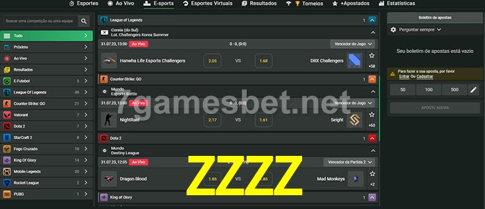O ZZZZ oferece uma grande seleção de opções de apostas em e-sports com probabilidades competitivas